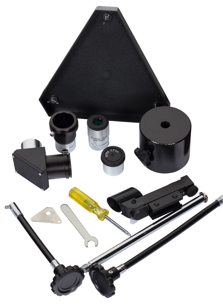 Труба собрана по схеме Максутова-Кассегрена. Такая конструкция позволяет добиться высоких оптических характеристик при компактных размерах телескопа. Телескоп комплектуется окулярами 3,6 мм и 17 мм.