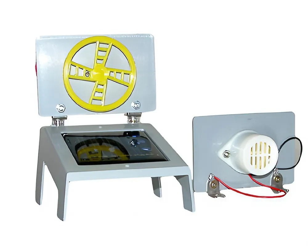 Комплект дает возможность продемонстрировать примеры преобразования световой энергии в электрическую, электрическую в механическую и электрическую в звуковые колебания.