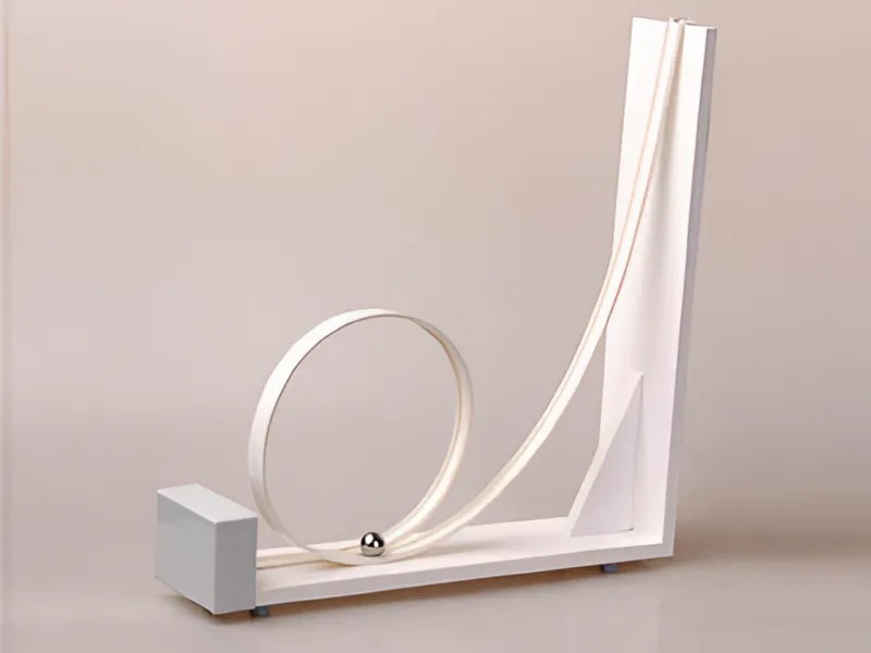 Прибор представляет собой желоб, изогнутый «мертвой петлей» и закрепленный на подставке со стойкой высотой около 35 см. В торце основания установлен уловитель для шарика.