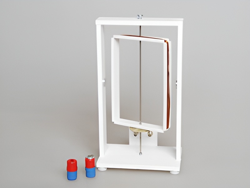 Два конца медного провода рамки соединены со скользящими контактами, через которые при помощи проводов ее можно включать в электрическую цепь. При вращении рамки скользящие контакты меняют полярность подключения. На боковых стойках корпуса с внутренней стороны закреплены магниты противоположными полюсами навстречу друг другу.