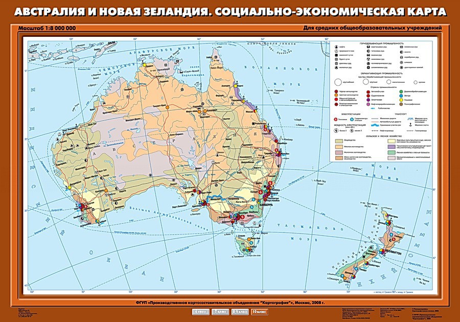 Австралия и Новая Зеландия. Социально-экономическая карта 70х100