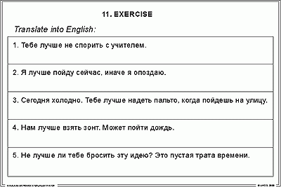 11–12. Упражнения на перевод по материалу кодотранспарантов 9, 10