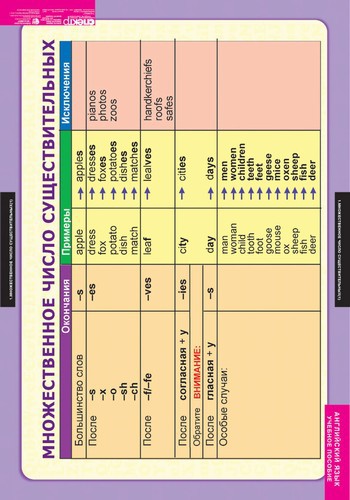 - Множественное число существительных.