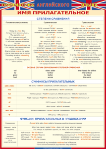 Таблица "Грамматика английского языка. Имя прилагательное" (100х140 сантиметров, винил) - fgospostavki.ru - Апрелевка