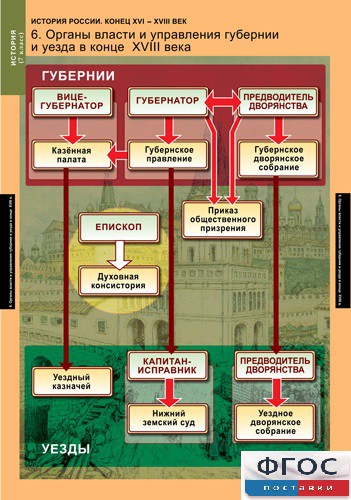 - Органы власти и управления российской губернии и уезда в конце XVIII века.