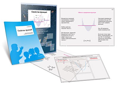 Комплект кодотранспарантов предназначен для использования на уроках математики в 7–9 классах. С помощью наложения кодотранспарантов можно изучать свойства линейной, квадратичной, а также функций прямой и обратной пропорциональности. При этом свойства функций (область определения, множество значений, нули, промежутки знакопостоянства и промежутки возрастания/убывания) раскрыты как с помощью формул, так и с помощью графиков.