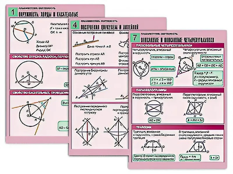 Комплект таблиц по геометрии "Планиметрия. Окружность" (8 таблиц, формат А1, ламинированные) - fgospostavki.ru - Апрелевка