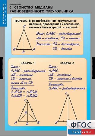 - Свойство медианы равнобедренного треугольника.