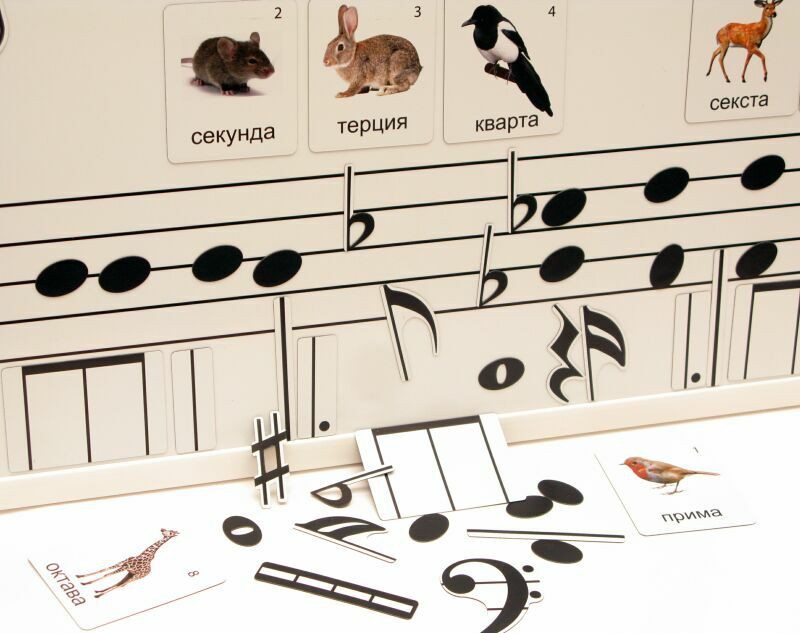 Эта магнитная доска с набором магнитных карточек может использоваться как в дошкольном учреждении на музыкальных занятиях, на уроках сольфеджио в музыкальной школе (фронтальная, групповая, самостоятельная работа), так и во внеурочной деятельности.