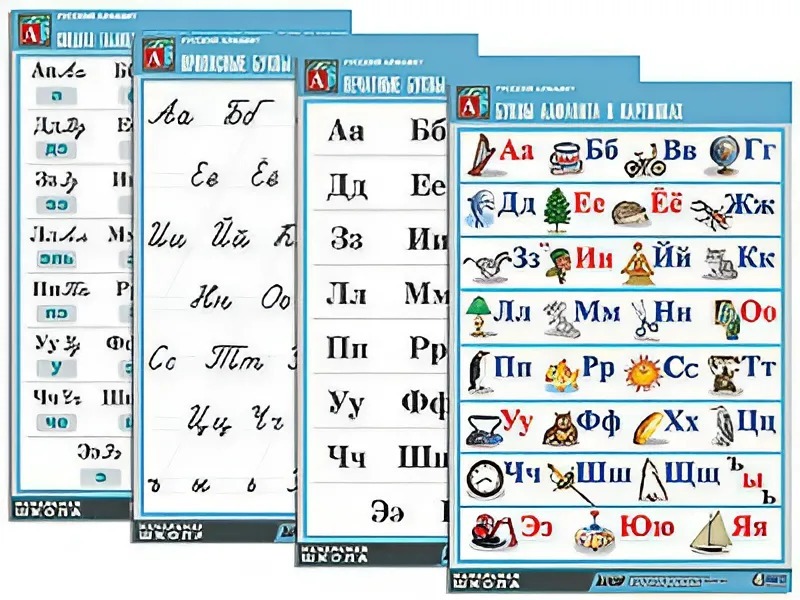 Комплект таблиц "Русский алфавит" (4 таблицы, формат А1, матовое ламинирование) - fgospostavki.ru - Апрелевка
