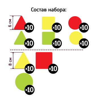 Набор магнитных карточек "Геометрические фигуры: изучаем форму, цвет, размер" (90 карточек, 3 цвета)