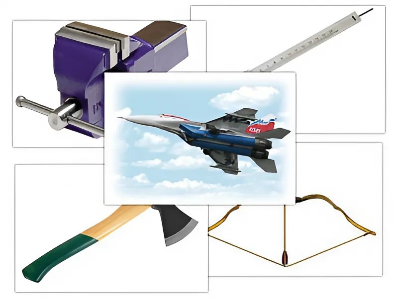 Набор предметных картинок "Оружие, военная техника. Инструменты" (48 штук, А4, с магнитами)