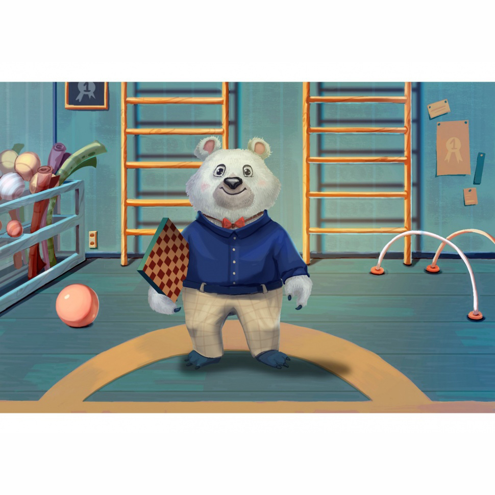 Белый медведь УМКА с помощью бесконтактного сенсорного контроллера поможет провести педагогу весёлую зарядку. Kinect улавливает характерные движения человека и передаёт их персонажу на экране. Ведущий вместе с медведем может показать ребятам: