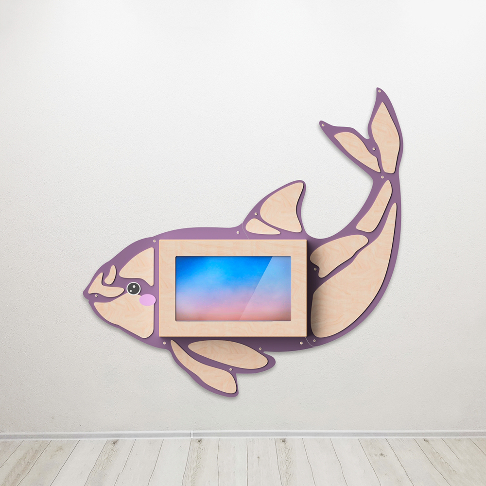 Настенная панель «Косатка» со встроенной интерактивной сенсорной панелью 32 дюйма. Это одновременно декоративное оформление стен и развивающая игрушка, ведь на панели установлен пакет игрового и обучающего ПО.