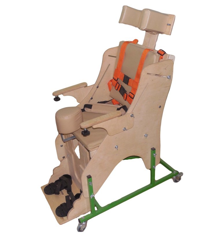 Опора для сидения представляет собой ортопедическое кресло на деревянной раме, расположенной на металлическом четырехколесном основании. Все колеса поворотные, задние колеса оснащены стояночными тормозами. Сидение и спинка оснащены съемными мягкими подушками. На подножке расположены пластиковые крепления для ступней типа «сандалии» с задними упорами и крепежными ремешками. Опора оснащена подголовником и съемным столиком, устанавливаемым на подлокотники.