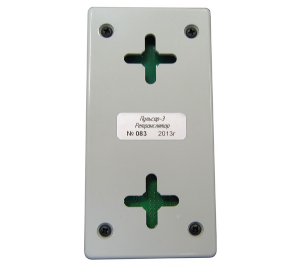 Ретранслятор (Рр). Предназначен для увеличения дальности приема (в случае большого расстояния от кнопки до приемника и при наличии в зоне работы системы железобетонных перегородок). Обеспечивает возможность размещения большого количества кнопок в разных, в т.ч. удаленных, зонах одного учреждения.