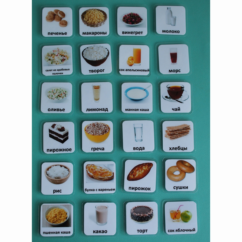 Карточки PECS – система альтернативной коммуникации для детей, у которых трудности с речью и общением. Карточки "Еда-2" помогут вашему ребенку в повседневной жизни, уменьшат неприемлемое поведение, структурируют день. Они пригодны для использования в коммуникативных книгах и визуальных расписаниях.