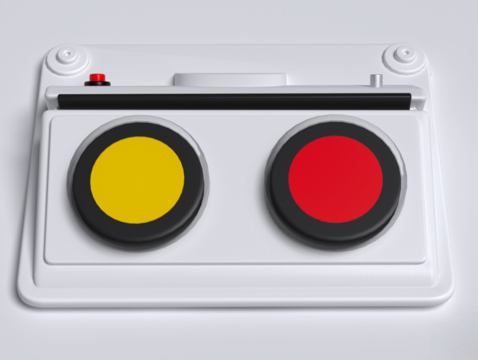 Игровой коммуникатор 2-х кнопочный со вставкой разработан специально для помощи в социализации детям, имеющим проблемы со слуховым, визуальным, тактильным восприятием и коммуникацией. Представляет собой корпус с плавным углом наклона, на котором размещены 2 кнопки для записи голосовых сообщений. Коммуникатор можно дополнять изображениями, которые помещаются в прорезь над кнопками. Устройство изготовлено из высококачественного ударопрочного пластика, имеет обтекаемые плавные формы без острых краёв и углов.