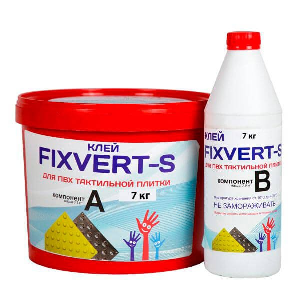 Клей поставляется в комплекте, состоящем из двух компонентов клея. Клей предназначен для прочной и долговечной фиксации тактильной ПВХ плитки, плитки из нержавеющей стали и тактильных индикаторов на асфальтовые, бетонные, полимерные покрытия.