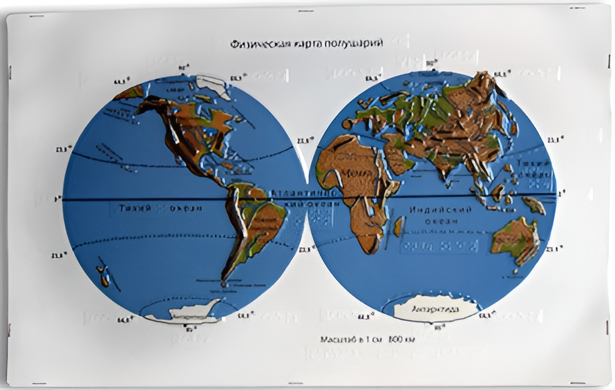Пособие для слабовидящих - Физическая карта полушарий - fgospostavki.ru - Апрелевка
