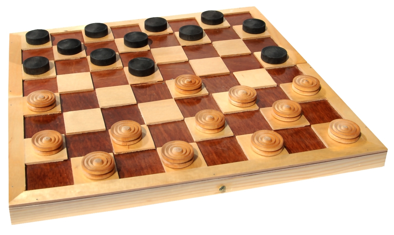 Особенность шашек заключается в том, что черные и белые поля доски находятся на разных уровнях. Белое поле расположено выше чёрного. Белые шашки имеют боковую окантовку и ребристую поверхность. Черные шашки сделаны без окантовки и имеют гладкую поверхность.