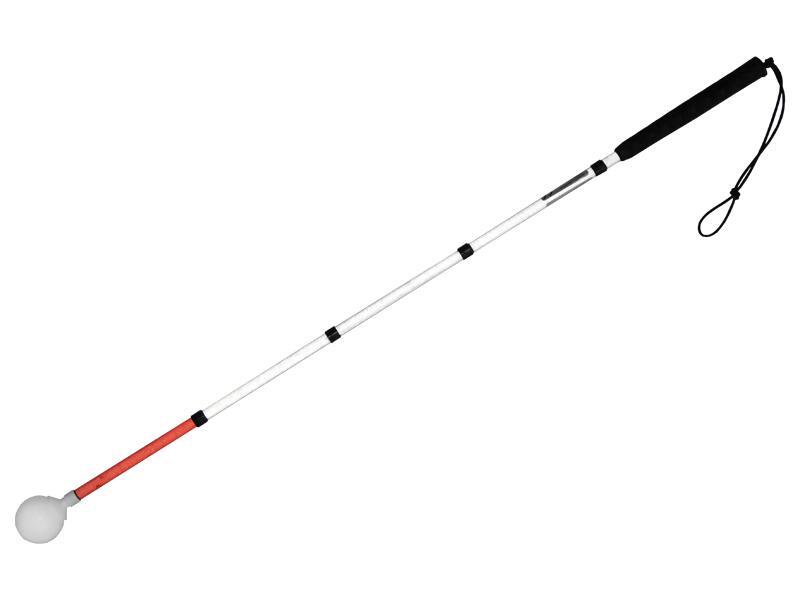 Складная ориентационная белая трость из композитовых трубок. Композит является особо лёгким и прочным материалом. Главное преимущество трости в её конструкции, которая при складывании позволяет не пачкать ручку трости.