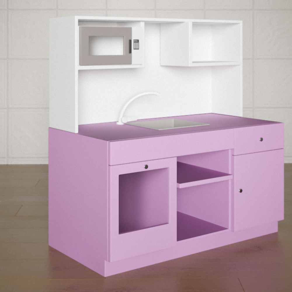 Детская кухня «Марина» визуально разделена на 2 яруса – нижний окрашен в мягкий лавандовый цвет, а верхний – в снежно-белый. Для игры имеется все необходимое – духовой шкаф, СВЧ-печь, мойка, 2 автономные столешницы и удобные полочки для хранения игровых наборов посуды и муляжей продуктов питания. Кухня изготовлена из материалов высокого качества, что позволяет пользоваться ими долгое время без вреда для здоровья.