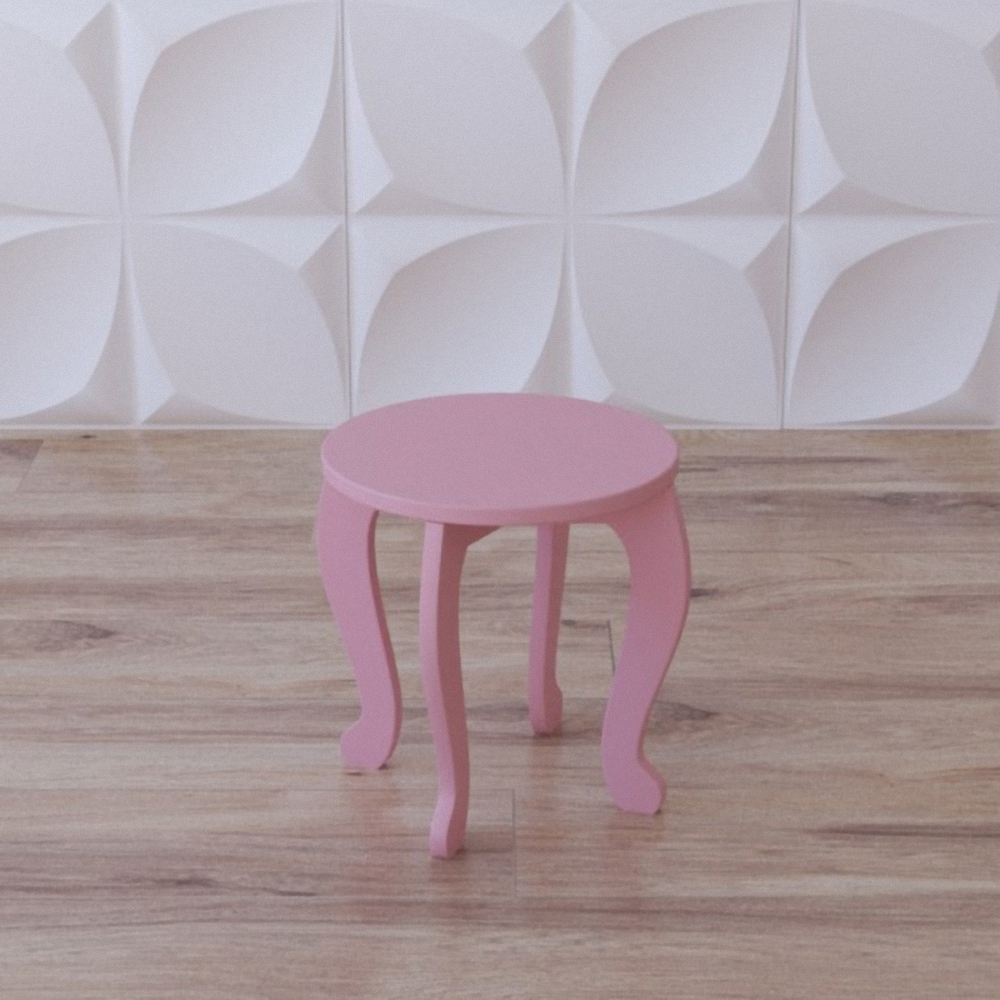 Табурет является модулем для обустройства различных учреждений – детсада, яслей, кружков по интересам для самых маленьких деток, будет уместным для использования дома. Состоит из круглого сиденья и четырёх фигурных вычурных ножек, очень устойчивый и одновременно с этим вполне мобильный, окрашен в нежно-розовый цвет.