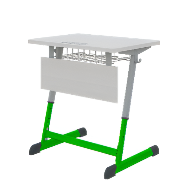 Парта NOMAD одноместная регулируемая по высоте имеет металлическое основание, столешницу ЛДСП с кромкой ПВХ, встроенный пластиковый пенал, сетка для принадлежностей, крючок для рюкзака, царгу из ЛДСП.