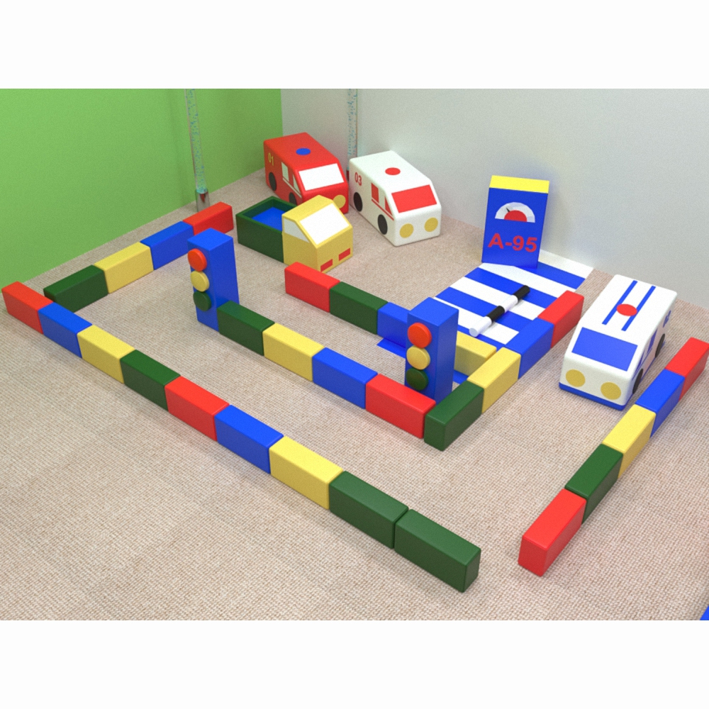 Представленный проект – более расширенная версия игрового набора «Грамотный пешеход» из каталога нашего интернет-магазина. Так, вышеупомянутый набор дополнен 4-мя машинами, 3 из которых – машины неотложных служб, бензоколонкой, светофорами, мини-лабиринтом. С таким набором любую скучную и сложную тему занятия можно превратить в веселую и понятную, которую быстро усвоят все дети без исключения! Все игровые элементы изготовлены из безопасных материй, которые устойчивы к повреждениям и разрывам. Благодаря плотному несъЕмному чехлу из искусственной кожи комплект надолго сохранит потребительские свойства. Плотный поролон одновременно отлично держит форму стенок и хорошо пружинит. Не требует сложных условий в уходе.