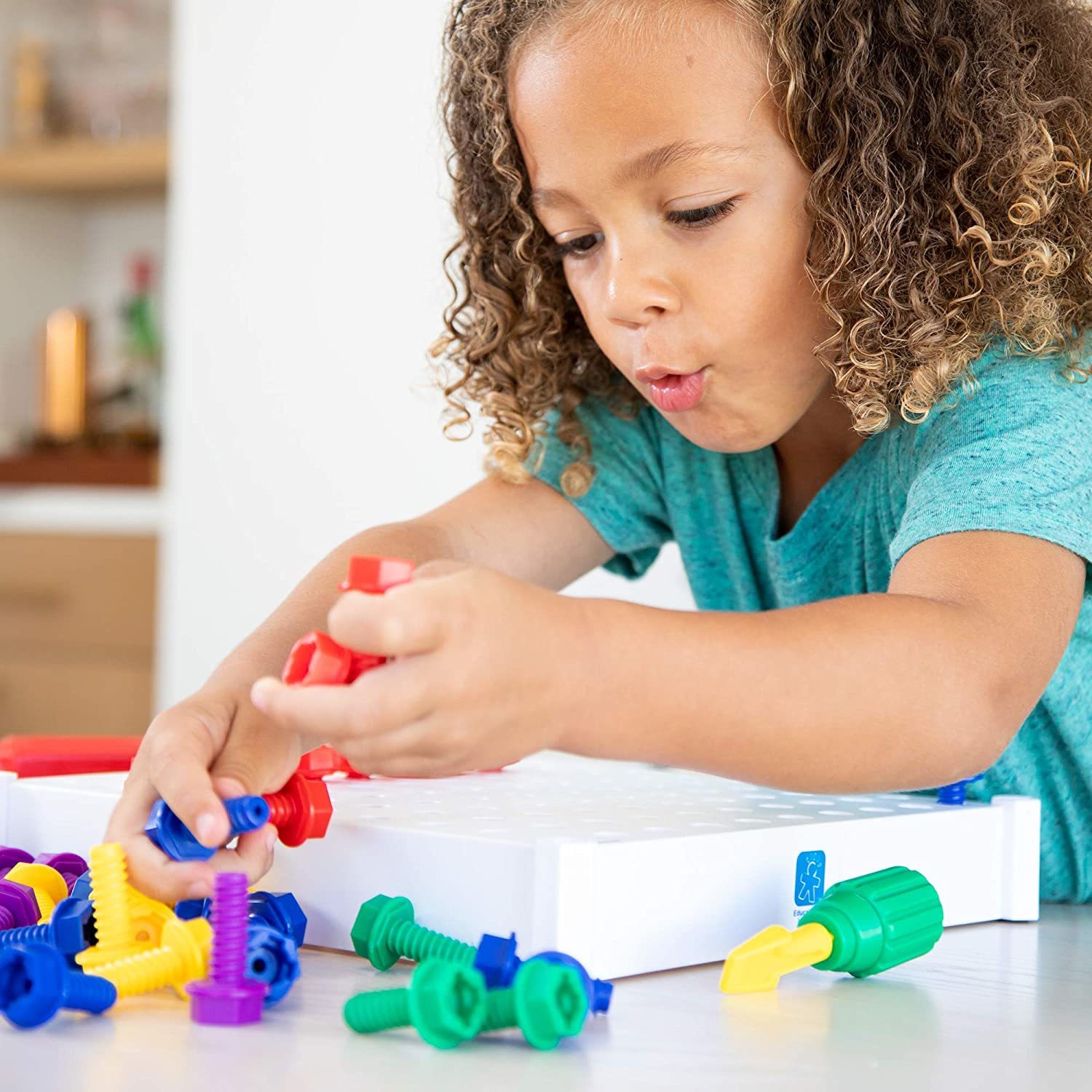 Базовые насыщенные цвета болтиков прекрасно контрастируют с белым фоном рабочей панели, позволяя ребенку сосредоточиться на процессе создания осознанного узора.