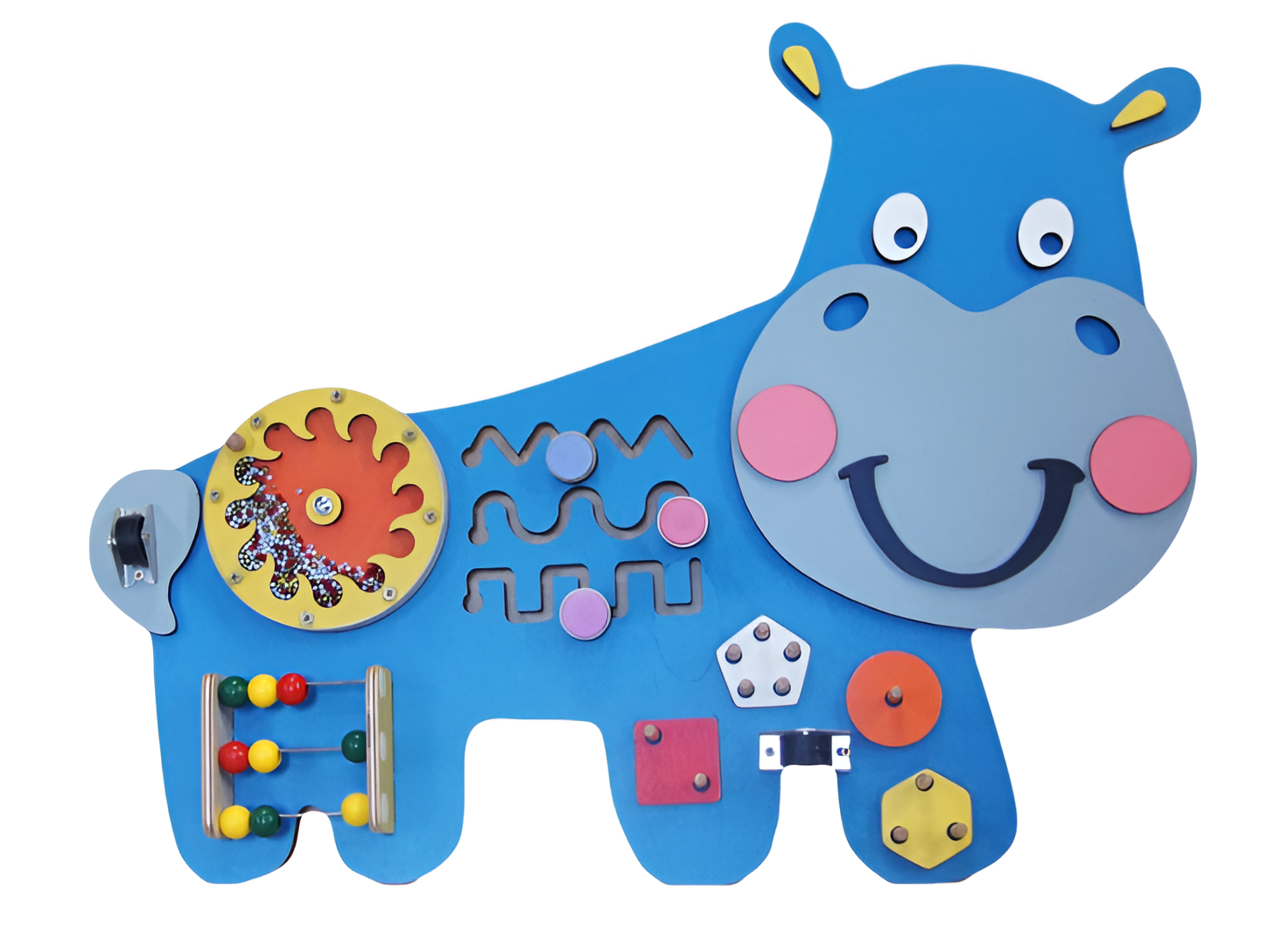 Бизиборд, который будет интересен и увлекателен для детей любого возраста. Его форма и изображение бегемота познакомит ребенка с новым для него миром - миром животных. Развивающая игра преобразит любую детскую комнату и доставит вашему ребёнку море удовольствия и увлекательных игр. Также ваш малыш сможет познакомиться и научиться различать геометрические фигуры. Это совершенно безопасно, ведь производитель позаботился об этом, и доска не имеет острых углов и не оставляет заусенцы, безопасна для детей. Купить недорогой Бизиборд в виде бегемотика можно для дома, для дошкольных учреждений, для медицинских клиник и для развлекательных центров.