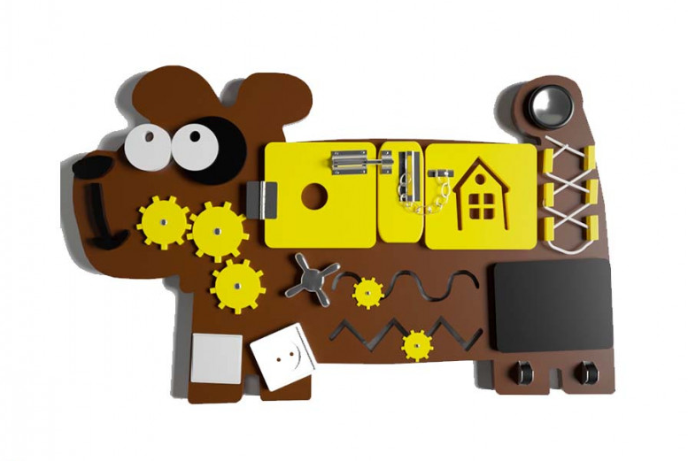 Бизиборд в виде щеночка разнообразит времяпрепровождение ребенка в детской комнате, в кабинетах логопеда и психолога, а также детских учреждениях. С этой игрой ребенок может менять правила игры, развивая в себе самые лучшие качества. Разноцветные элементы бизиборда позволяют малышу улучшить воображение, логическое мышление уже после первой игры, а главное, увеличить словарный запас. Немаленький в своем роде бизиборд украсит любую детскую комнату, вызывая интерес ребенка на постоянной основе. Полезная игра богата разнообразием элементов, а также позволяет ребенку самому придумать правила игры. Более того, качественные, а главное, безопасные материалы, позволяют наслаждаться игрой с раннего возраста.