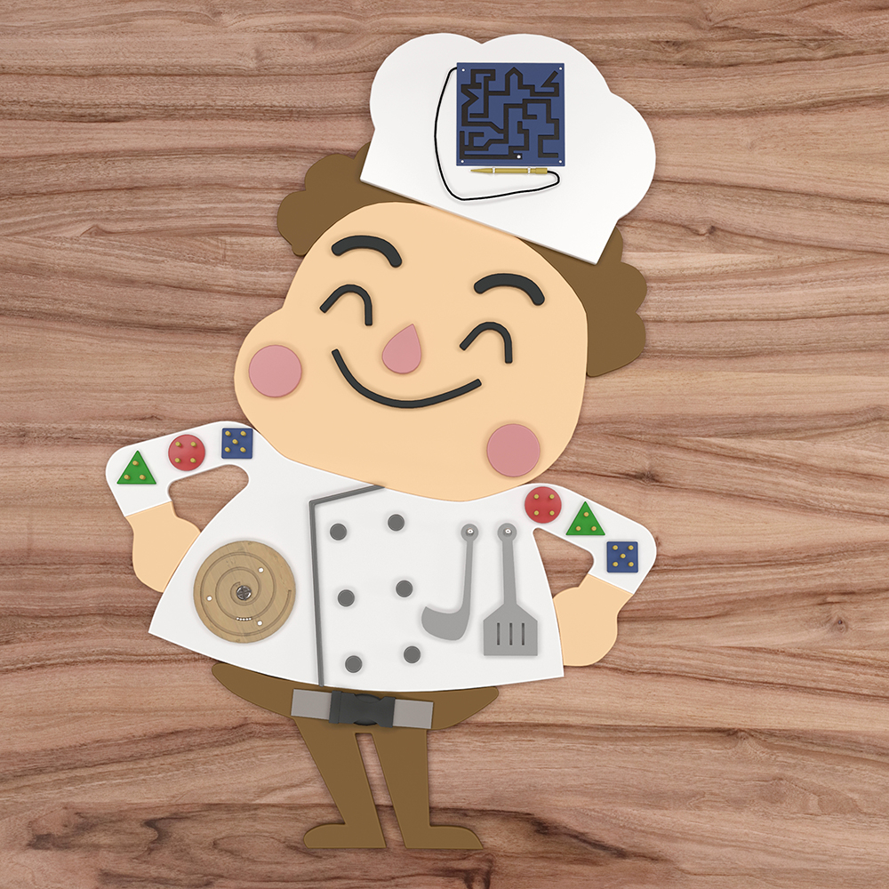 Яркий бизиборд сделан в форме человека для правильных и полезных игр малышей и деток постарше. Ребенка обязательно привлечет внимание форма и множество различных полезных пространств, которые не только принесут радость, но и помогут в комплексном развитии малыша. Играть в бизиборд «Шеф-повар» можно как вместе с вашим ребенком, так и наблюдая как детки играют вместе. Совместные игры очень важны для детей и укрепляют связь с родителем. Купить бизиборд можно как для домашних игр, так и для детских учреждений, поликлиник и садиков.