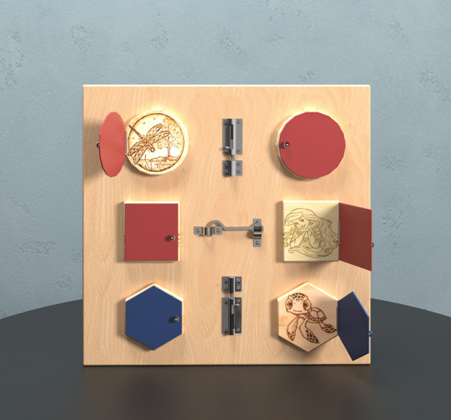 Бизиборд на тему сюрприза прекрасно подойдет для игр в одиночестве, с мамой и папой, а также в большой компании, постоянно привлекая внимание ребенка. Бизиборд этой формы безопасно удовлетворяет детское любопытство, а главное эффективно развивает.