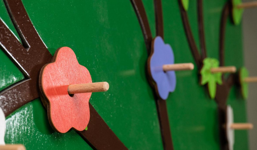 Декоративно-развивающая панель в виде дерева представляет собой форму дерева с пышной и однородной кроной. На веточках панели расположены штырьки, на которые можно надевать листики и цветочки разного цвета и формы. Все детали изготовлены из натурального дерева, тщательно отполированы и отшлифованы, чтобы гарантировать безопасность и долговечность. Эта игровая панель подходит для детей от 3-х лет и особенно полезна для детей с ограниченными возможностями.