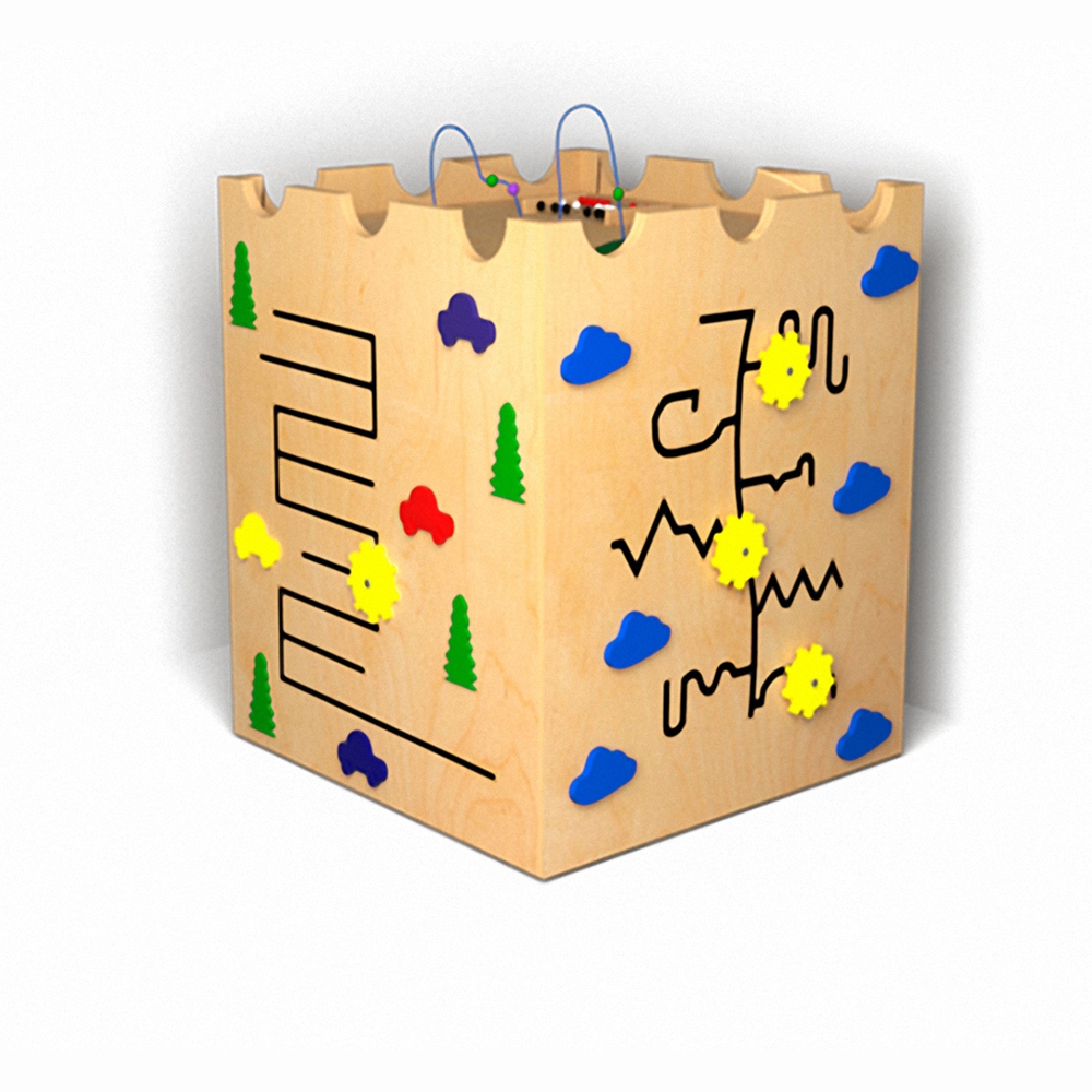 • Бизикуб повторяет элементарные навыки в повседневной жизни: зашнуровать ботинки, застегнуть или расстегнуть кофточку, открыть или закрыть дверь. Таким образом, малыш становится самостоятельным.
