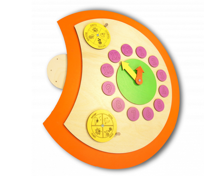 Настенный игровой модуль в виде части гусеницы-времени - это красивая игровая зона, выполненная из качественных материалов и напоминает голову гусеницы. Она безопасно в использовании и не оставляет зацепок в детских ручках. Это большие часы с разноцветными цифрами и подвижной минутной и секундной стрелкой. Настенный игровой модуль заинтересует как маленьких детей, так и постарше, а взрослым поможет сохранить дом в целости и сохранности. Она подойдет для домашнего использования и для специальных учреждений.