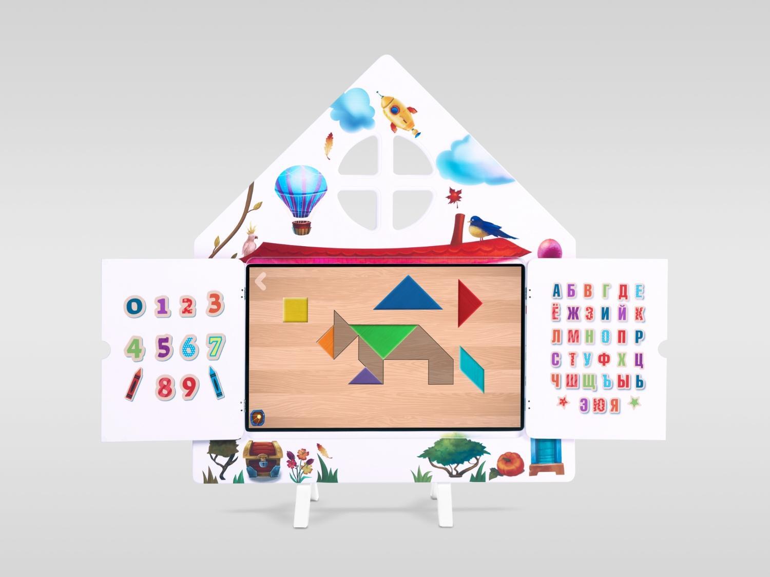 МИК «Теремок» - художественно оформленная интерактивная панель, имеющая створки, которые защищают от повреждений поверхность экрана. На створках располагается принт с алфавитом и цифрами.