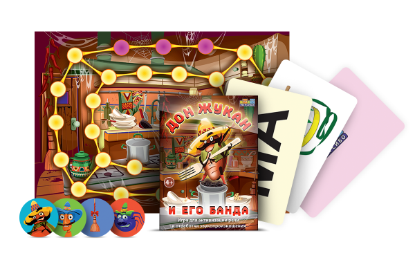 Главная Каталог Оборудование для логопеда Логопедические карточки, игры и игрушки Игра для активизации речи и отработки звукопроизношения "Дон Жукан и его банда"