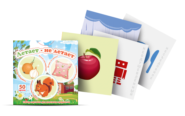 В комплект входят 50 карточек: 34 карточки с предметами и 16 карточек-классификаторов с вопросами.