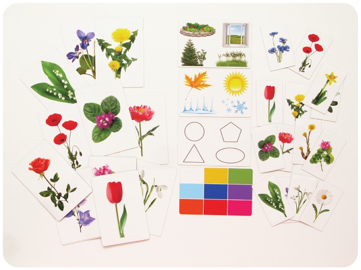 - 16 карточек с цветами (9 см х 5 см): раздаточный материал;
