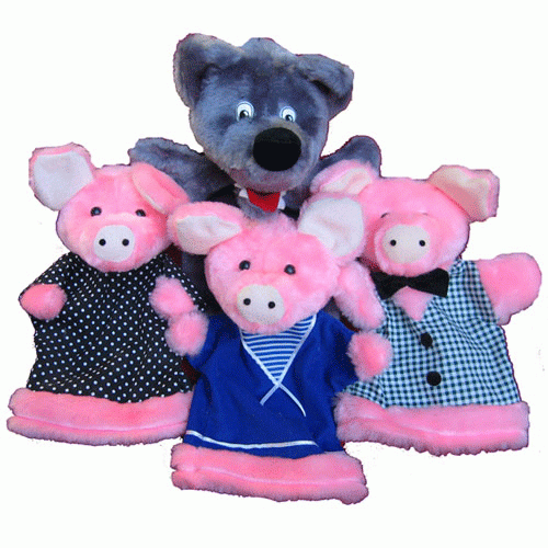 Набор состоит из 4 перчаточных кукол: Волк и три поросенка.