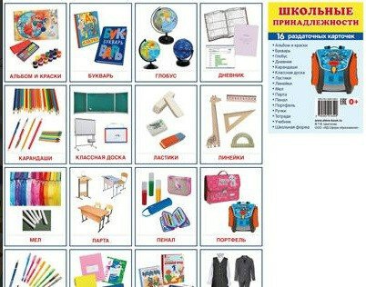 Раздаточные карточки "Школьные принадлежности" - fgospostavki.ru - Апрелевка