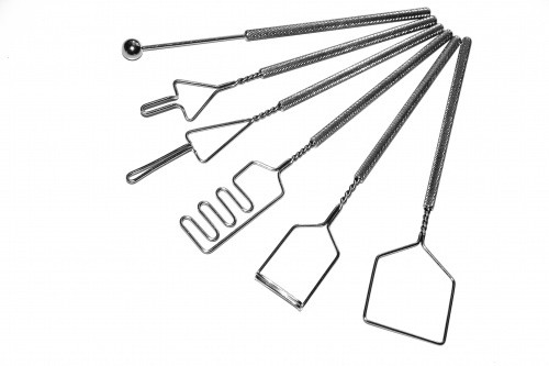 Набор из 6 инструментов для постановки звуков. Изготовлены из проволоки "нержавейка". Рукоятка из нержавеющей стали с накаткой. Шарик из пищевой нержавейки. Жаропрочные! При использовании Аламинола, рекомендуем не оставлять зонды в растворе более, чем на час.