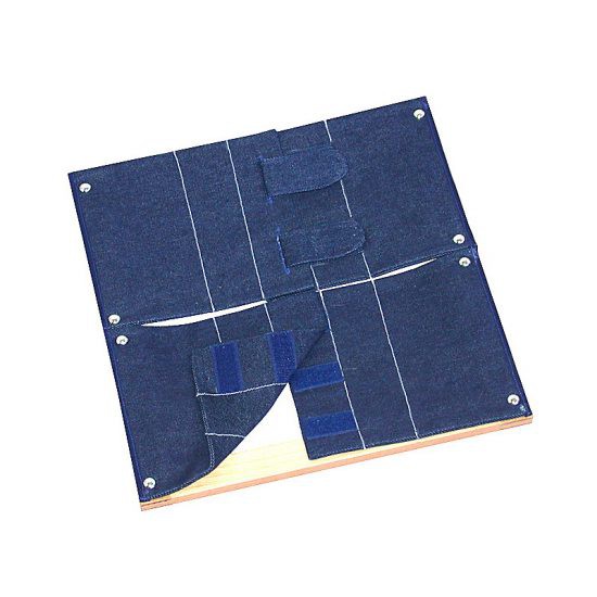 Рамка позволяет ребенку приобрести навык обращения с липучками. Особый интерес вызывает способ соединения застежки из двух разных материалов. Работа с рамкой способствует укреплению мышц пальцев и развитию запястья.