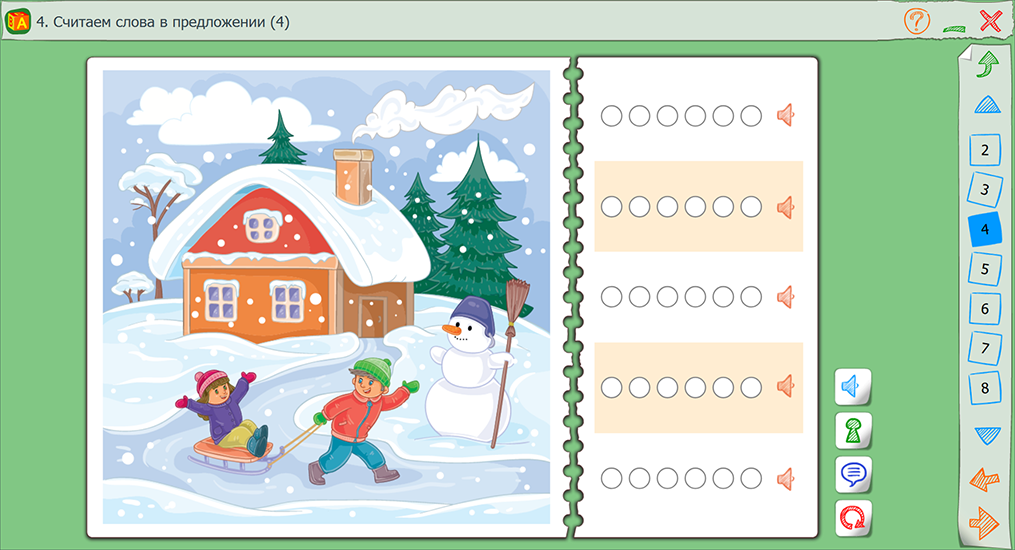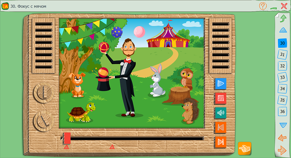 Интерфейс пособия позволяет ребёнку заниматься с минимальной помощью логопеда, родителя или воспитателя.
