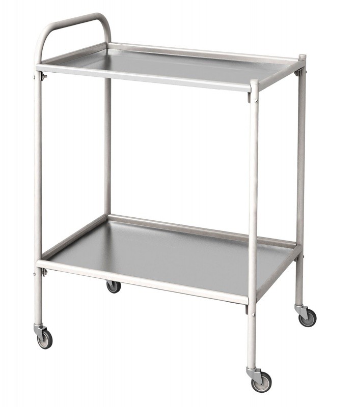Столик процедурный передвижной металлический с двумя полками из нержавеющей стали