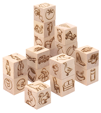 На гранях первого набора изображены предметы, относящиеся к 12 лексическим темам, осваиваемым детьми дошкольного возраста.