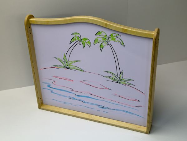 На одной из сторон панели можно писать и рисовать мелками, на другой - маркерами. Маркерная сторона также является магнитной.